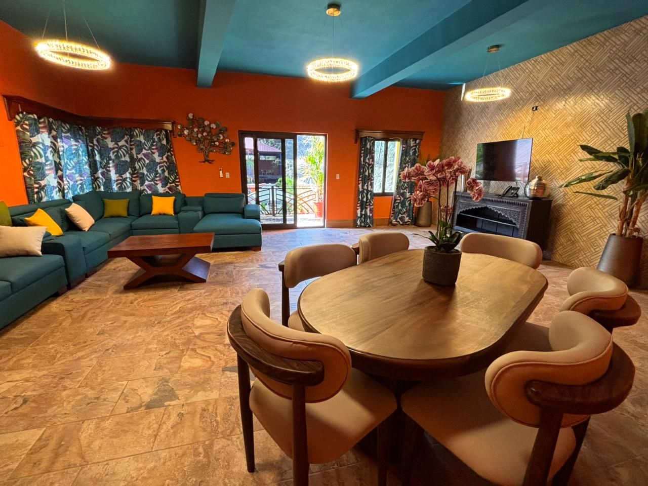 The VIP Area of Hotel Valle Nuevo has been created to offer absolute exclusivity: a spacious, private, and elegant setting ideal for business meetings, family gatherings, or special moments with friends. Featuring a refined dining area, a spacious and comfortable lounge, air conditioning, a large-screen television, and a private bathroom with shower, every detail has been carefully designed to provide comfort and distinction.