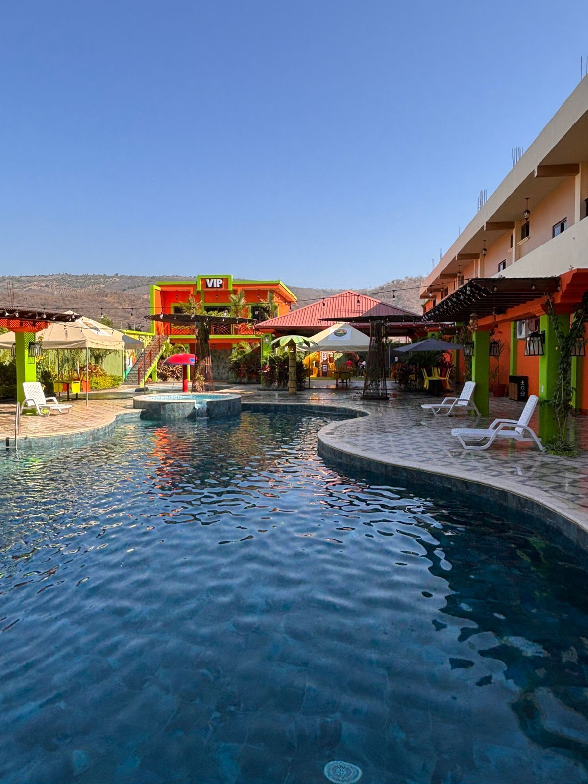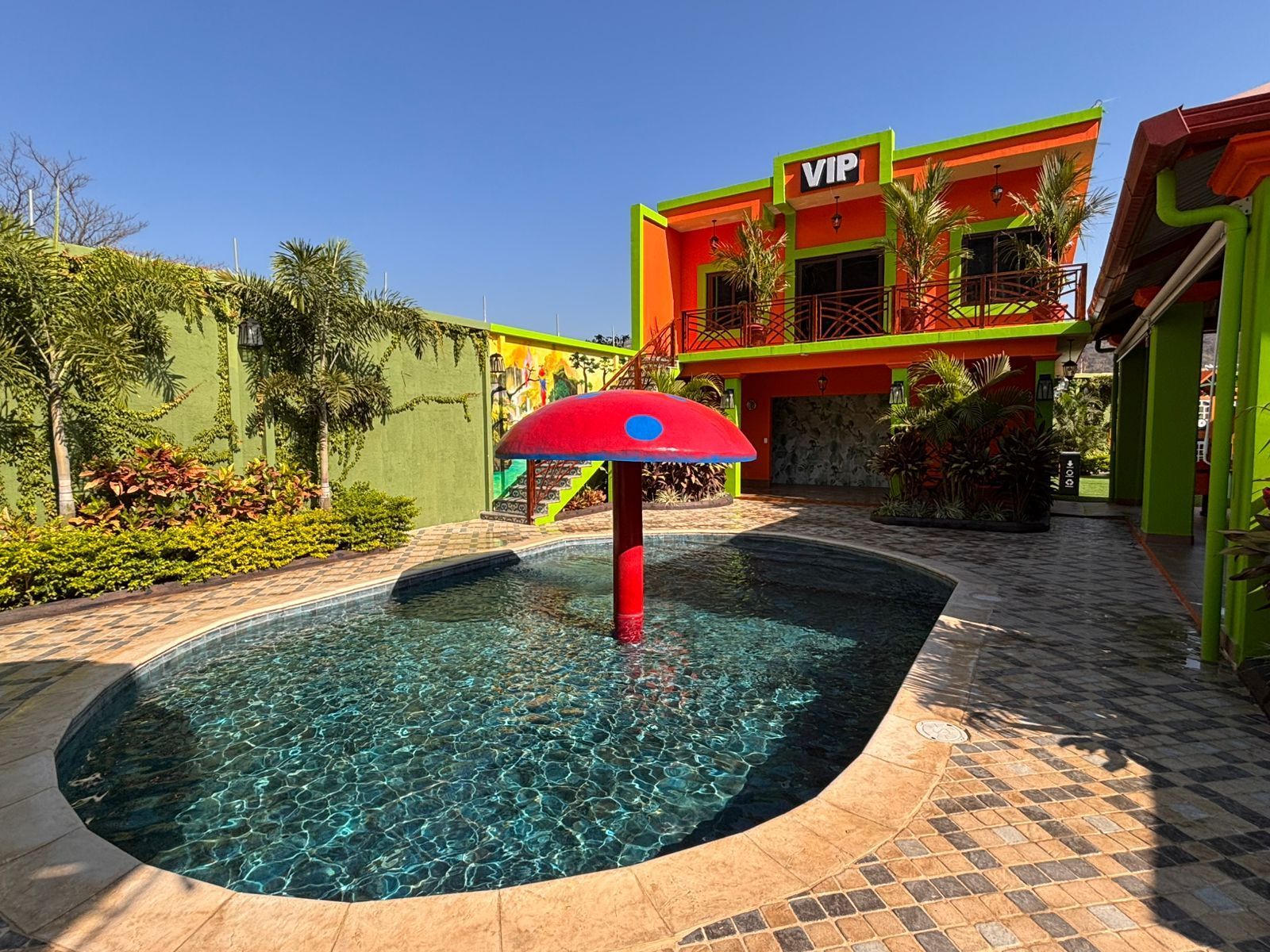 Our poolside bar completes the experience, offering signature cocktails, refreshing beverages, and dishes from the main menu so you can enjoy your favorites in a fresh, healthy, and exclusive environment.For the little ones, we provide a safe and charming pool decorated with a mushroom-shaped waterfall that turns every moment into unforgettable fun.