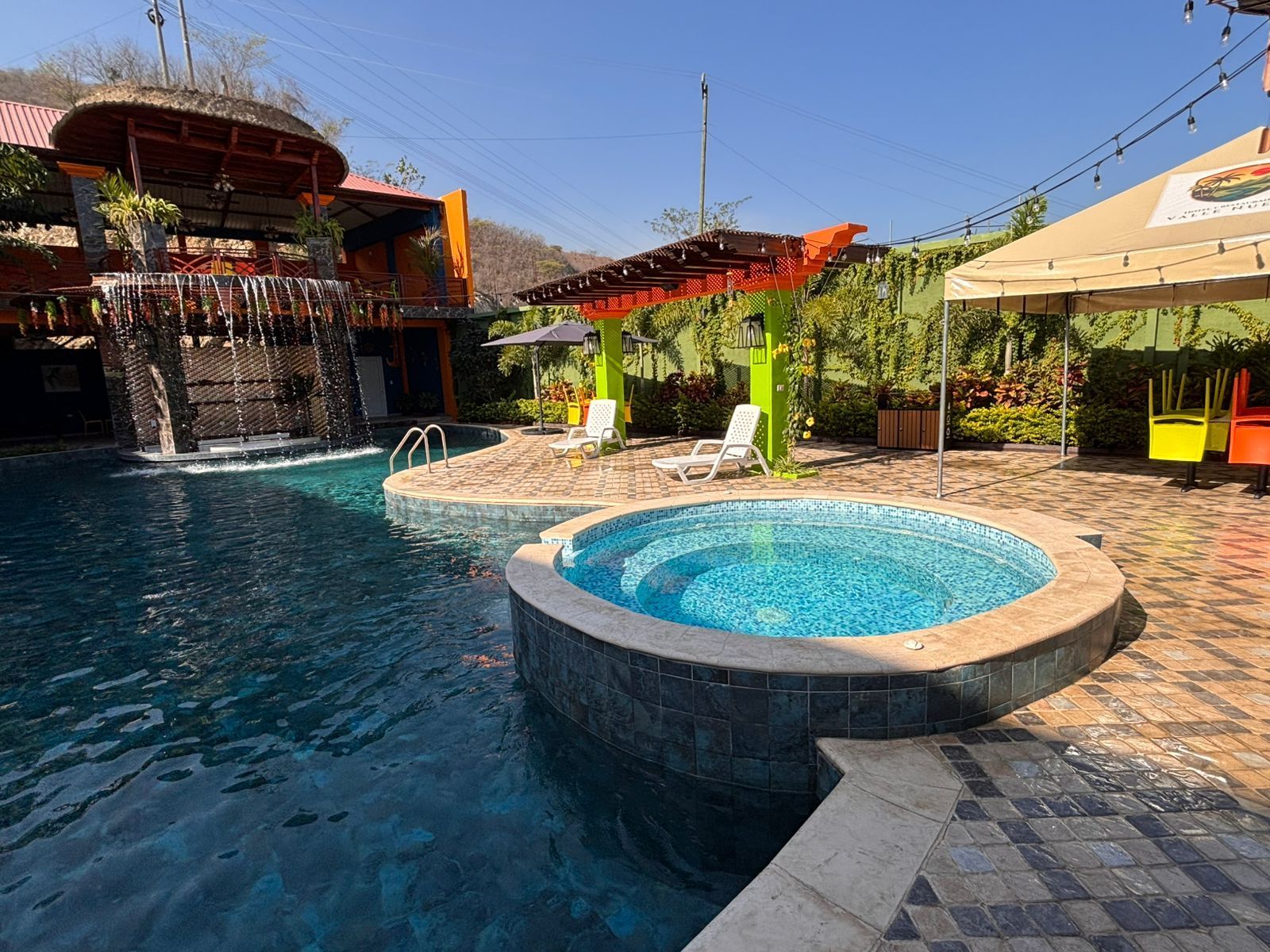 At Hotel Valle Nuevo, every detail of our swimming pool has been designed to offer an experience of luxury and distinction. The main pool, spacious and crystal-clear, is complemented by an elegant waterfall whose soothing sound surrounds the environment with serenity and harmony. Besides it, a sophisticated outdoor jacuzzi invites guests to relax with a special drink while enjoying ideal company and perfect weather.